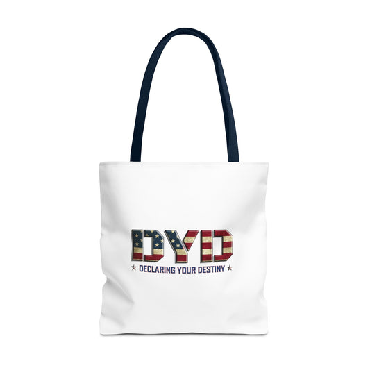Declaring Your Destiny USA logo/ USA Alpha & Omega Christian Tote bag