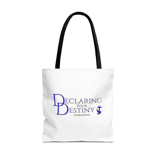 Declaring Your Destiny Blue and Gold logo/ Ephesians 3:20 Christian Tote bag