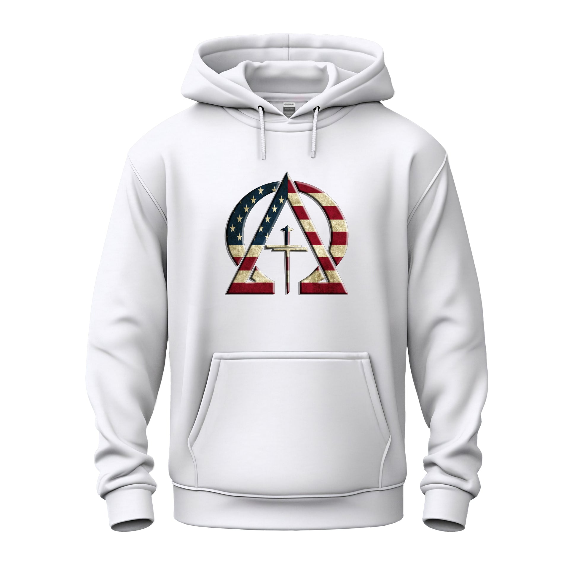 This design symbolizes a divine union between faith and nationhood. It encapsulates the eternal promise of Jesus' presence alongside the enduring spirit of the nation, evoking a powerful sense of unity and hope.