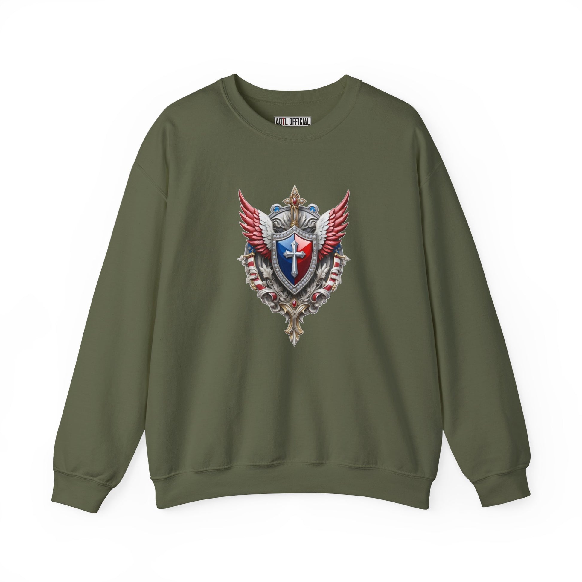 This exquisite design captures the essence of faith, elegance and patriotism, making a bold statement about the rich and divine heritage of the United States. Showcase your appreciation for God, artistry and national pride with this stunning and symbolic crest.