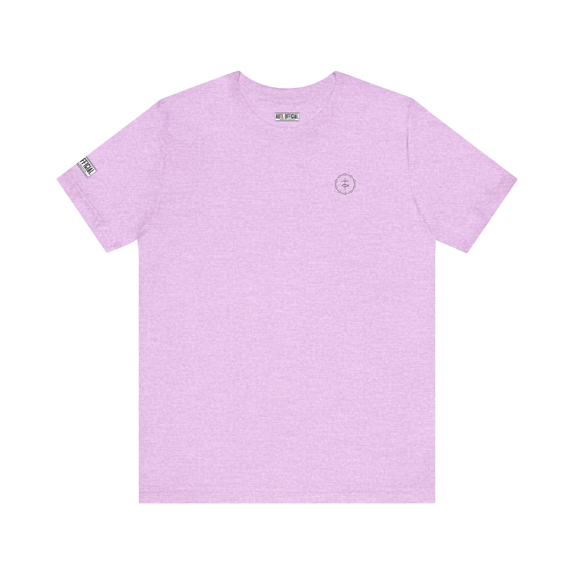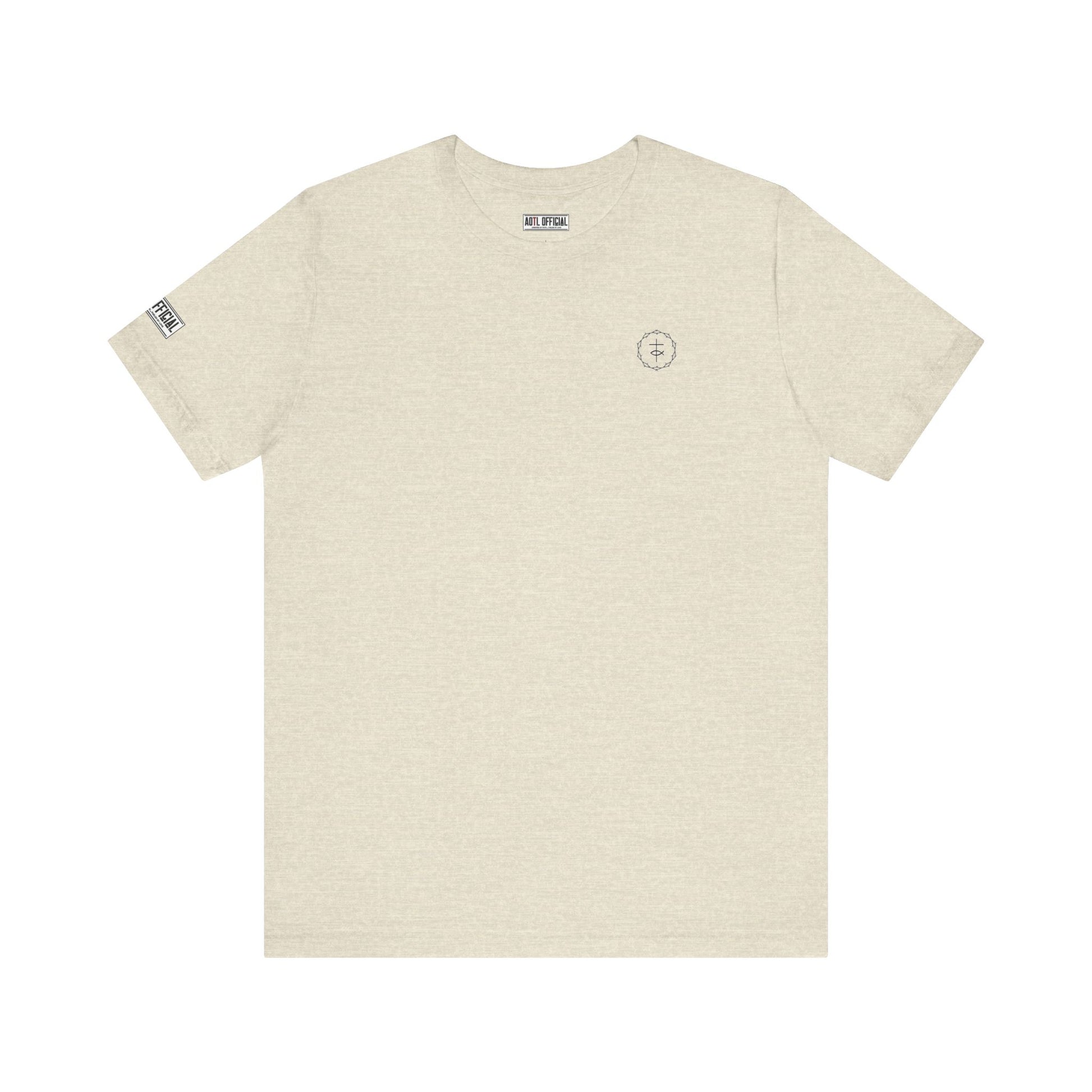 This Christian t-shirts blends comfort, subtlety and strength, designed for those who want their faith to speak with quiet confidence. Featuring a trending micro-symbol (Cross & Fish)placed on the left chest. On the right sleeve, the company logo sits with understated elegance, complementing the design rather than competing with it. The result is a clean, balanced look—classy yet powerful—that allows wearers to carry their message of faith with dignity, style, and purpose.