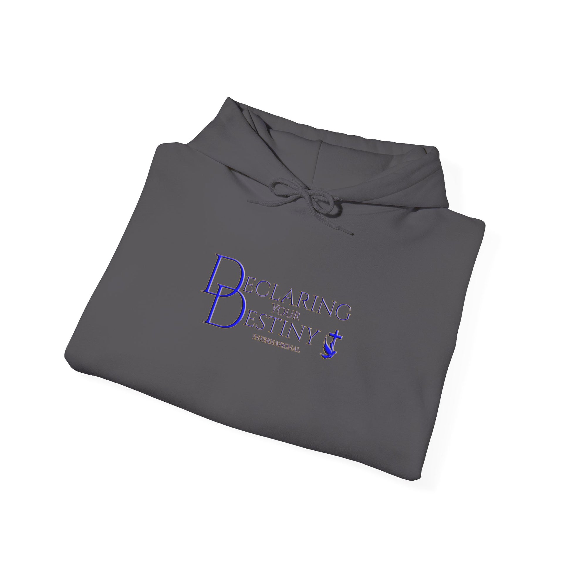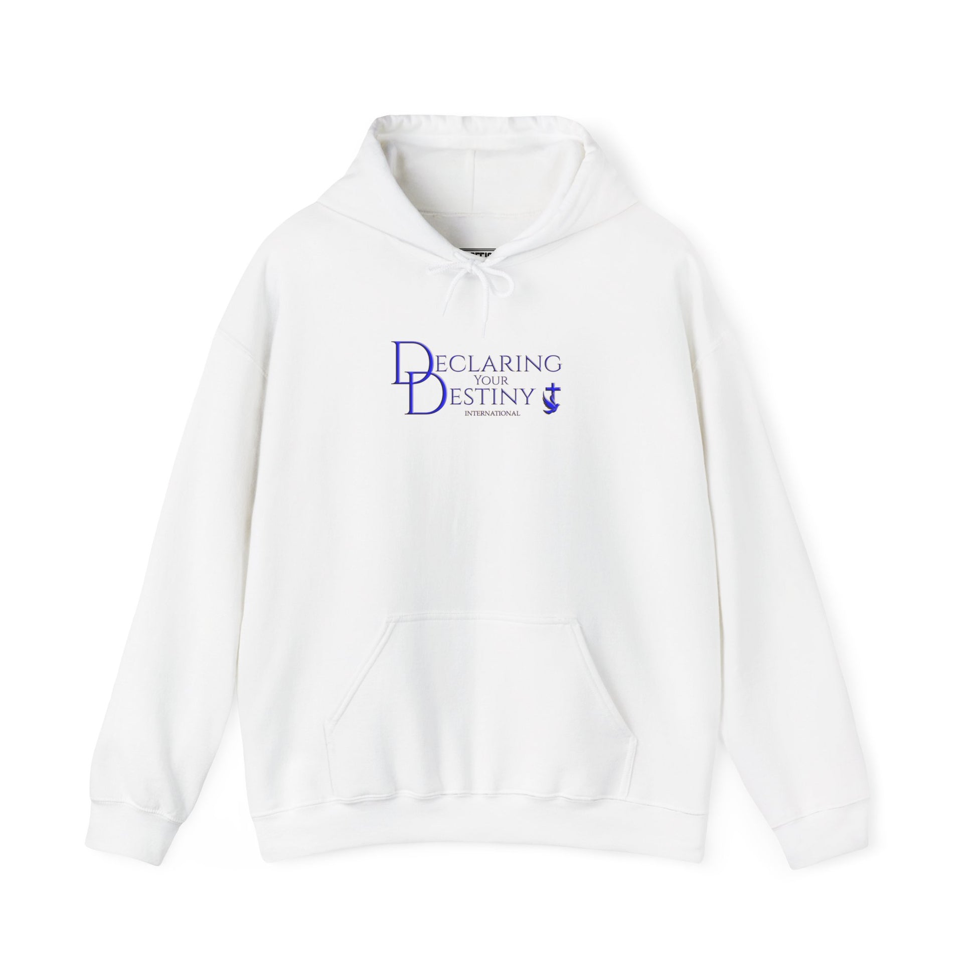 This beautifully crafted two sided hoodie features the Declaring Your Destiny logo in Blue & Gold on the front, accompanied by the Alpha and Omega Jesus Walking On Water logo on the back.