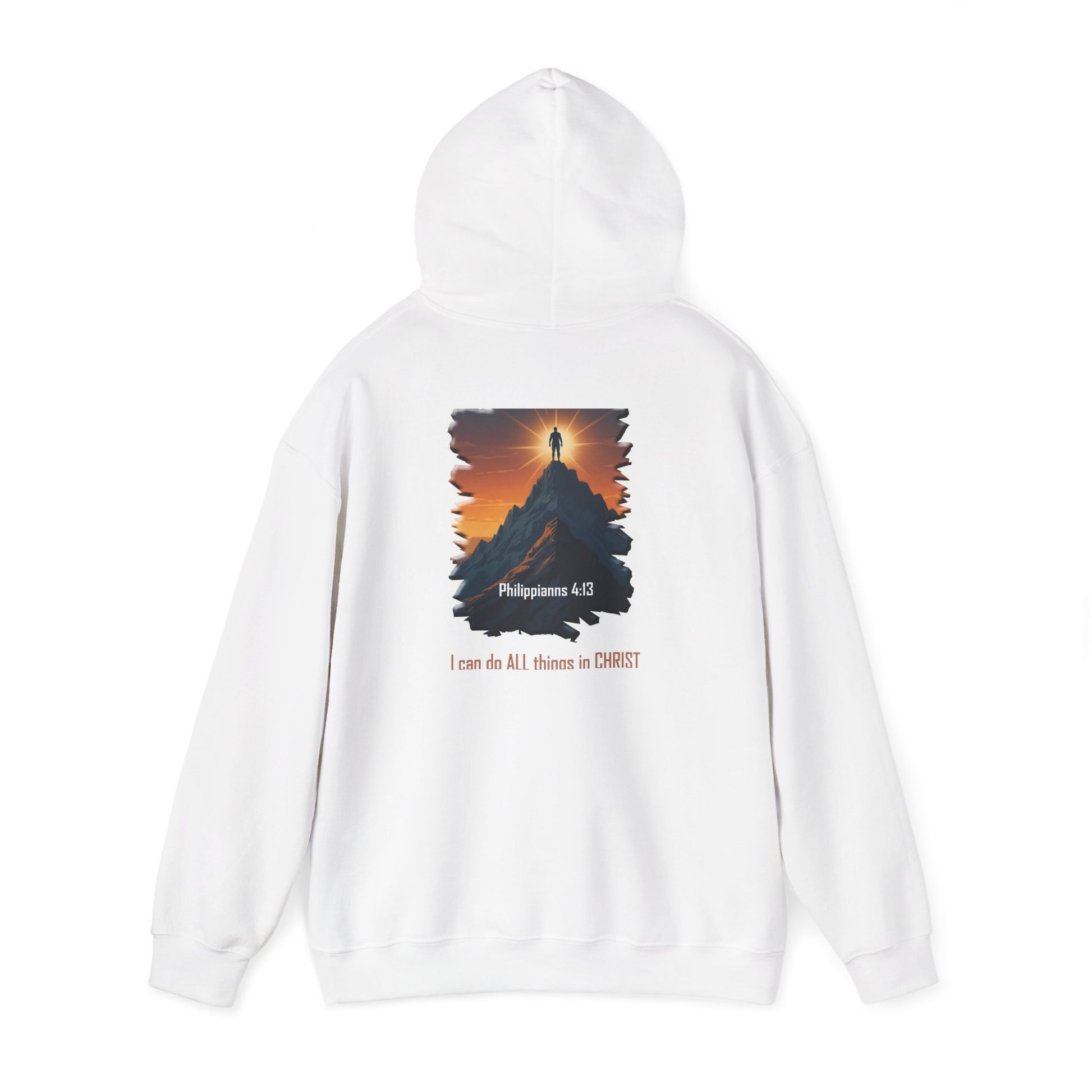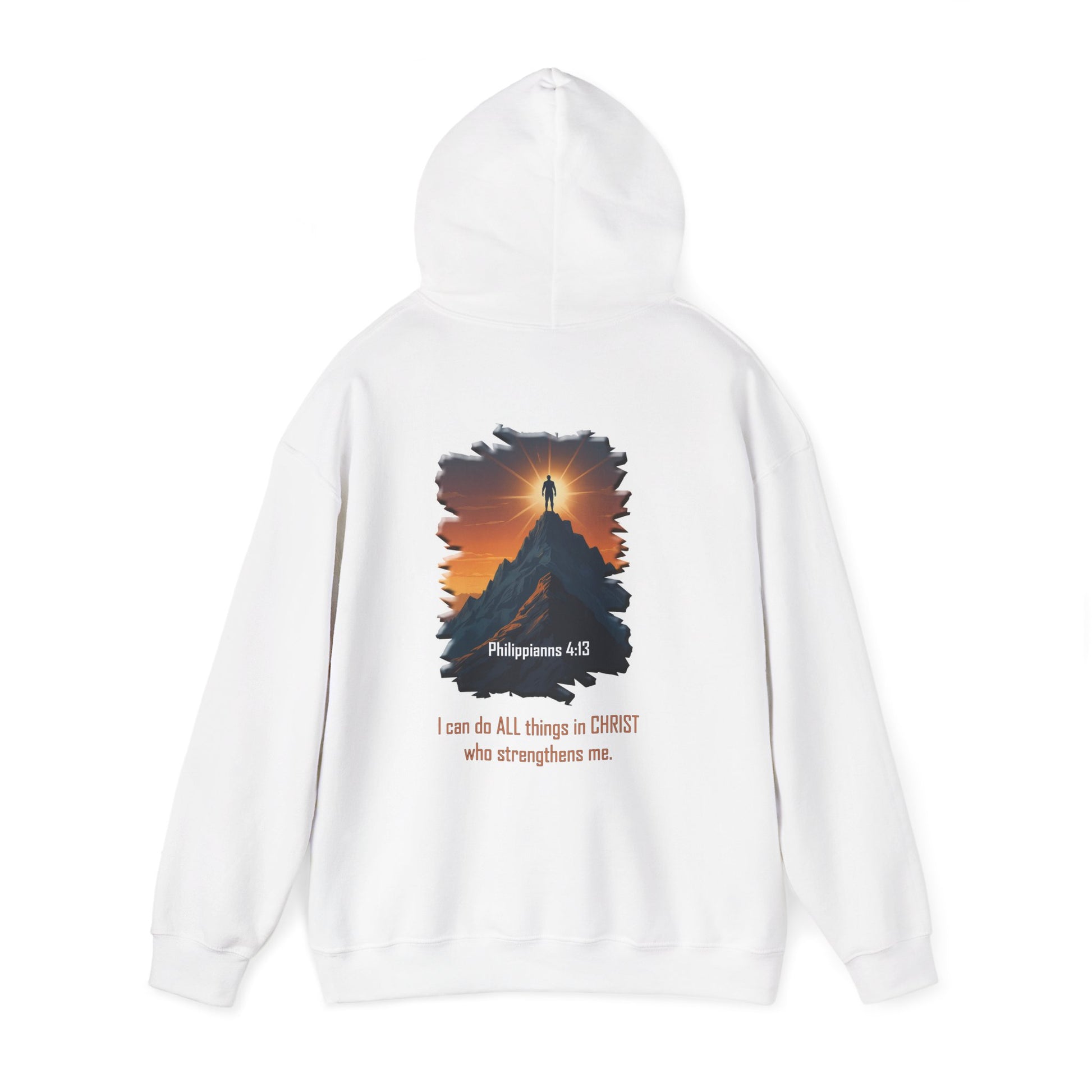 This beautifully crafted two sided hoodie features the Declaring Your Destiny logo in Blue and Gold on the front, accompanied by an illustrated version of the Bible verse Philippians 4:13 on the back.