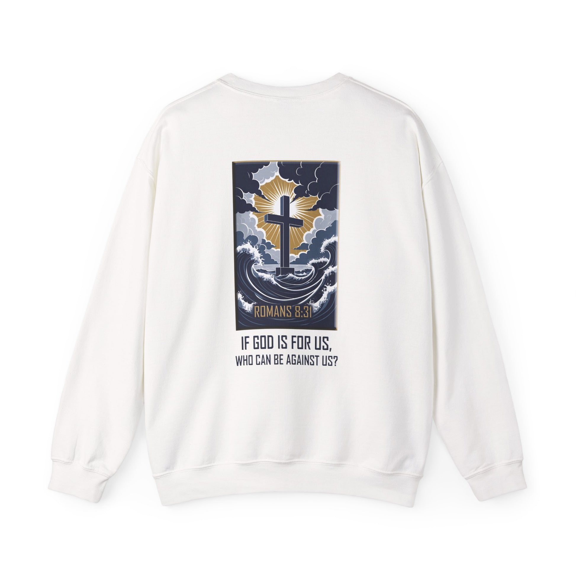 This beautifully crafted two sided sweatshirt features the Declaring Your Destiny logo in Blue & Gold on the front, accompanied by an illustrated version of the Bible verse Romans 8:31 on the back.