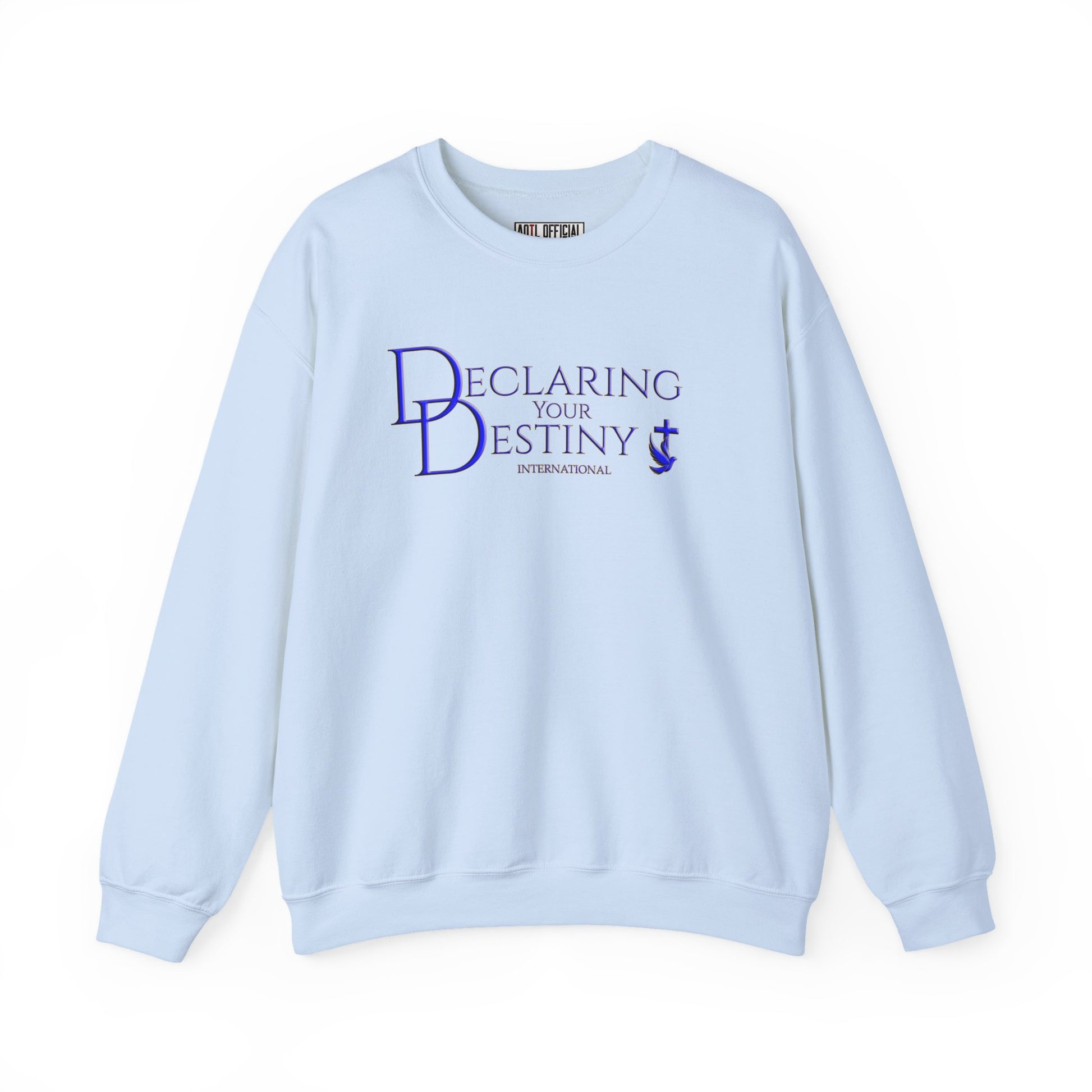 Declaring Your Destiny Blue & Gold Logo/ Romans 8:31 Unisex Heavy Blend™ Crewneck Sweatshirt