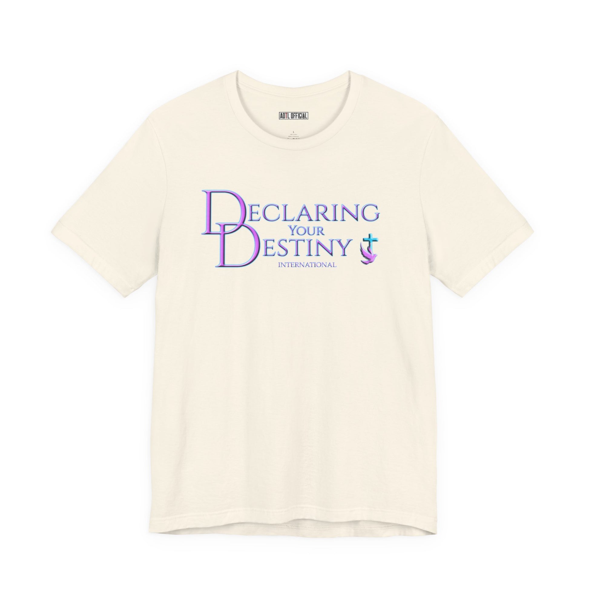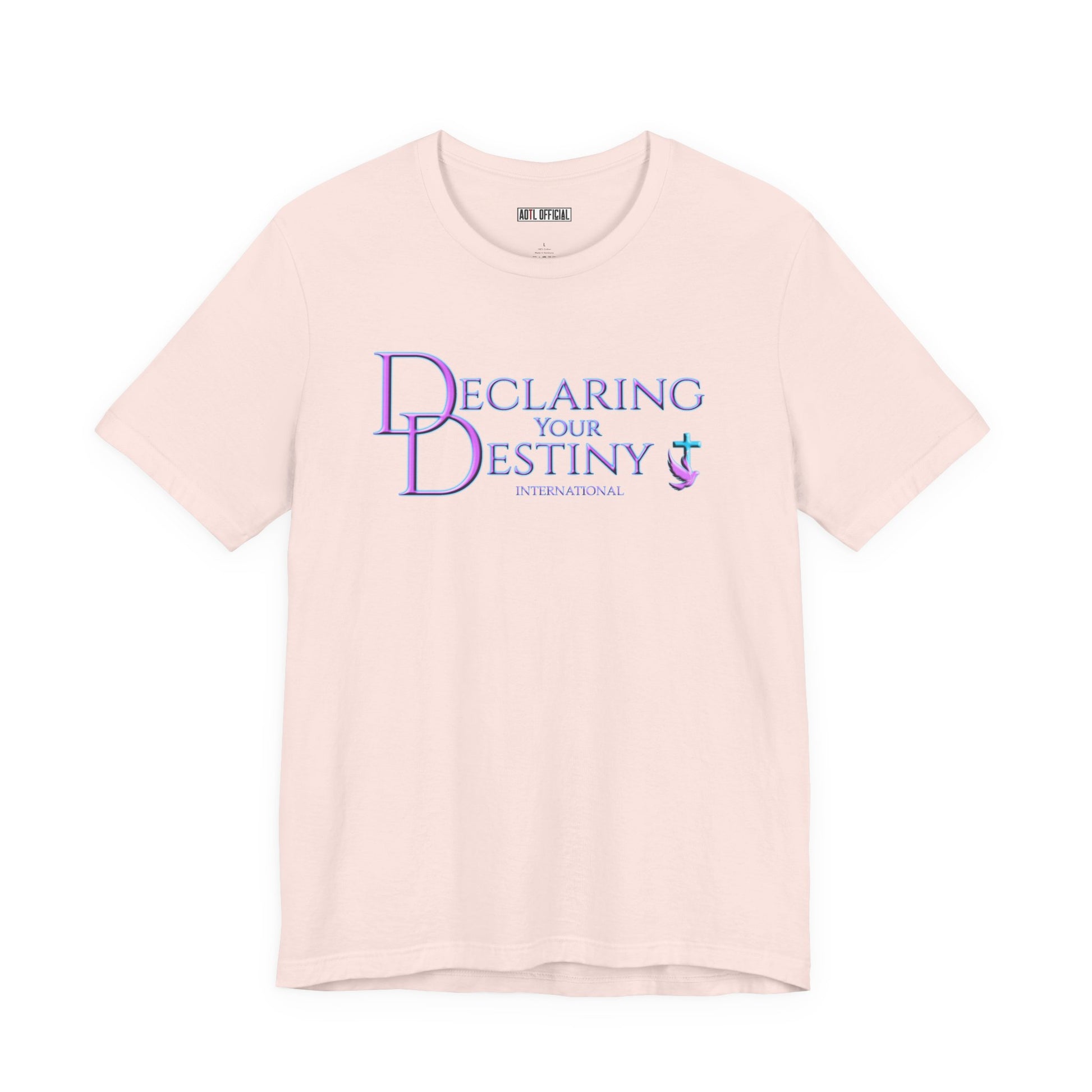 This beautifully crafted front only design features the Declaring your Destiny logo in Lilac & Teal on the front.
