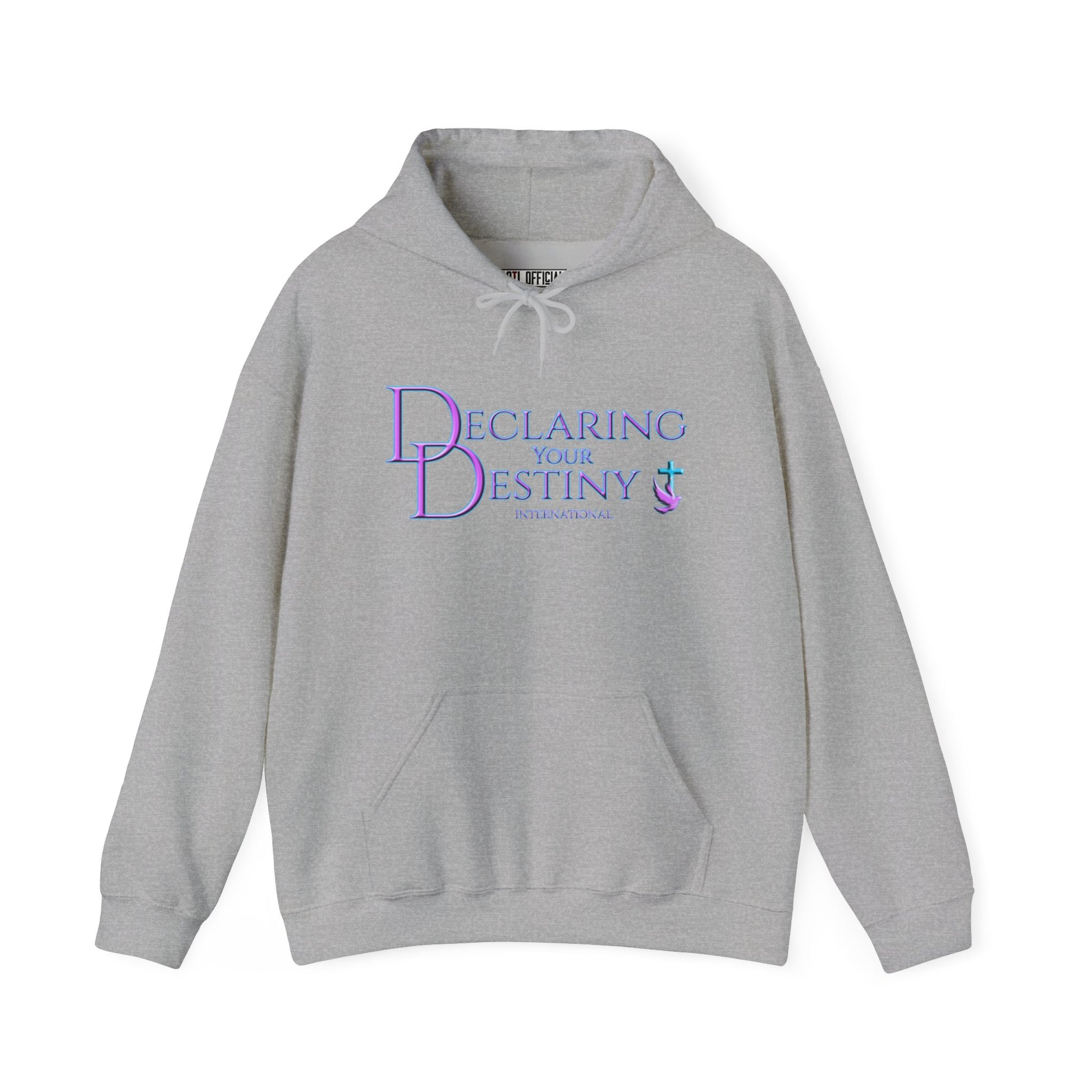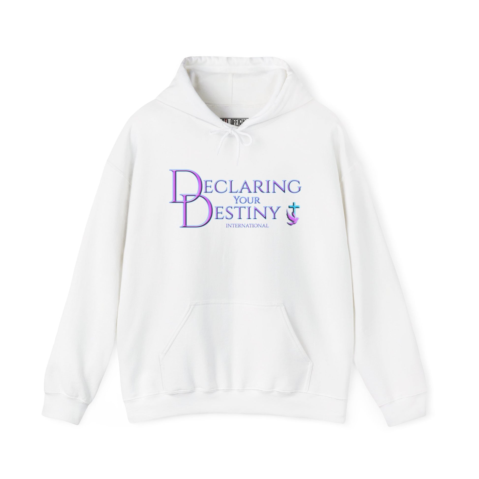This beautifully crafted two sided hoodie features the Declaring Your Destiny logo in Lilac & Teal on the front, accompanied by the Alpha & Omega Purple Lightning logo on the back.