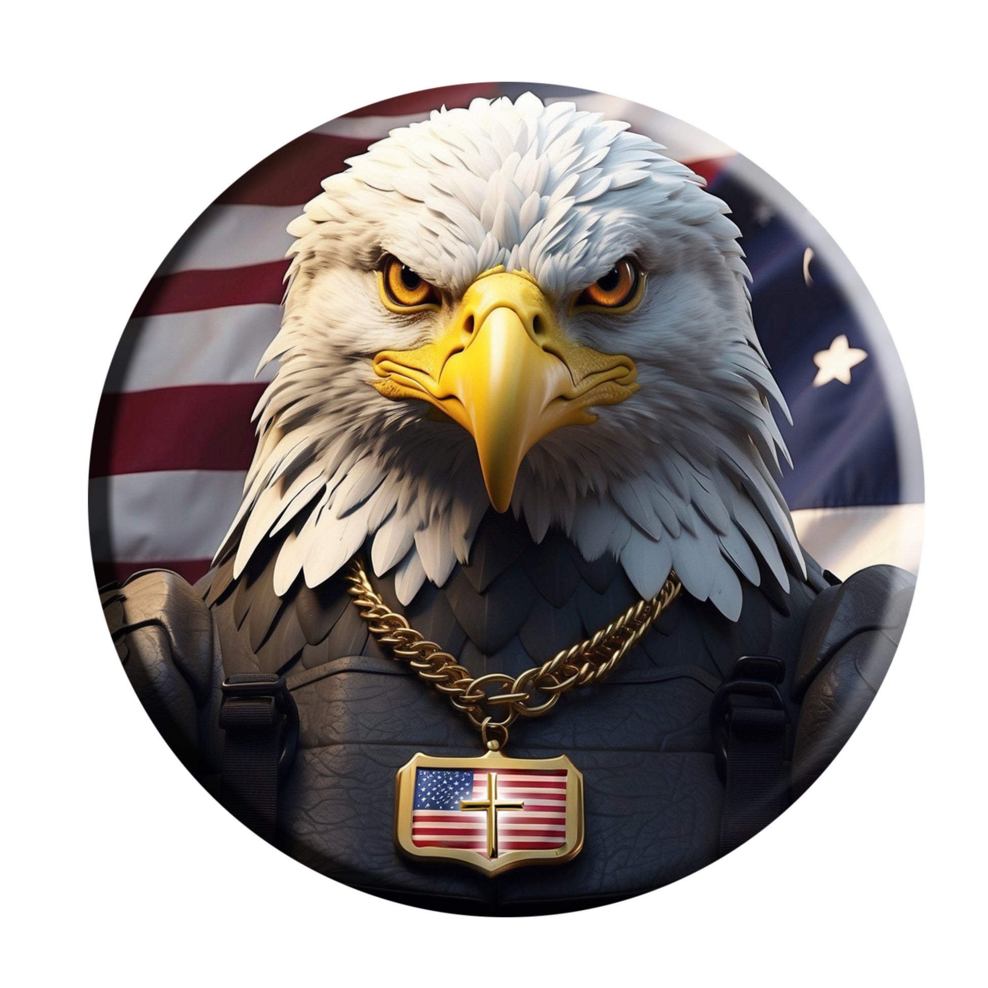 Embrace the spirit of freedom with our "Golden Sentinel" design. The centerpiece is a radiant gold Christian cross, symbolizing strength and faith. Wear this unique and powerful design to express your unwavering commitment to God, liberty and patriotism.