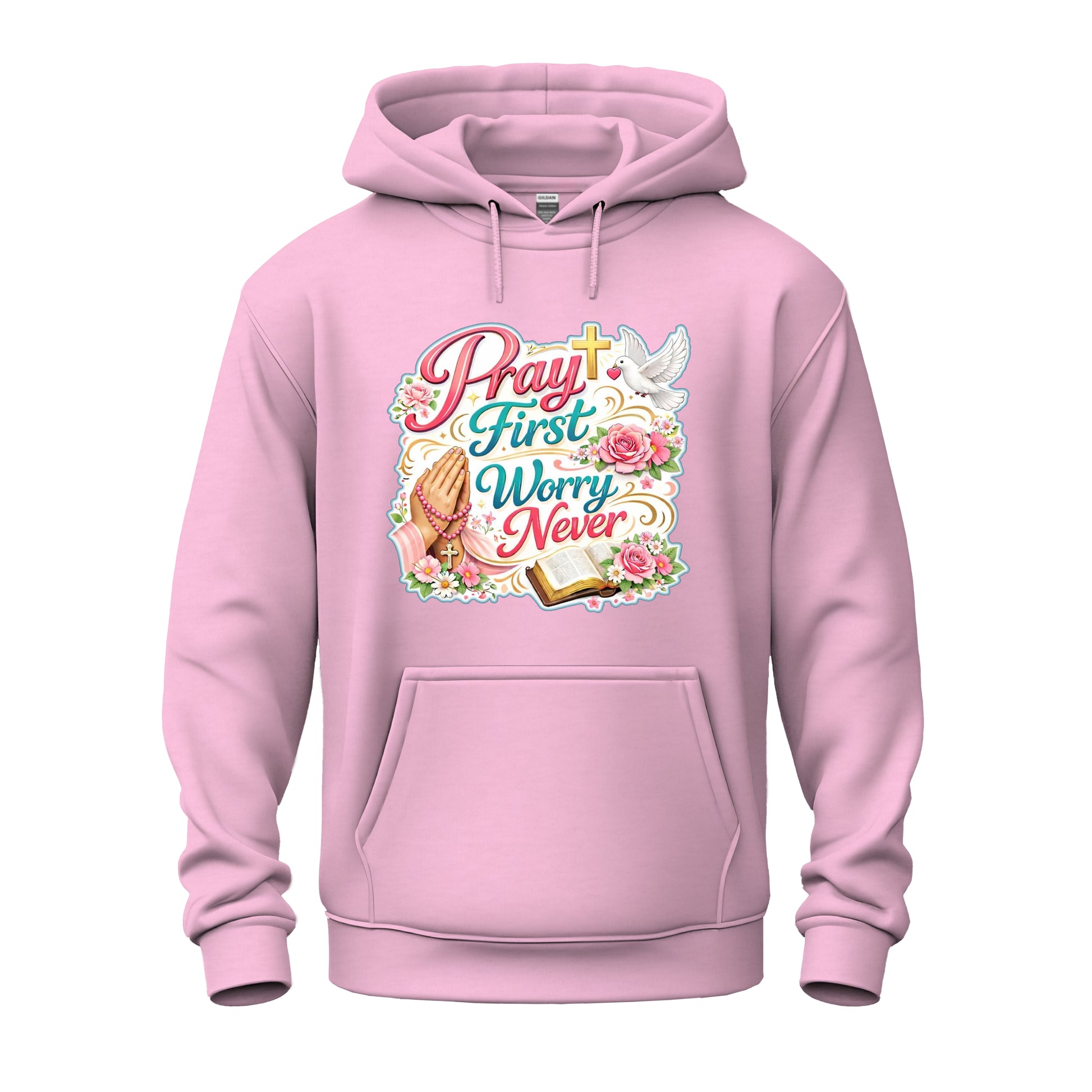 Pray First, Worry Never — a simple yet powerful reminder to bring everything to God before letting fear take over. This design reflects a life rooted in prayer, trust, and peace, knowing God is in control no matter the circumstance.