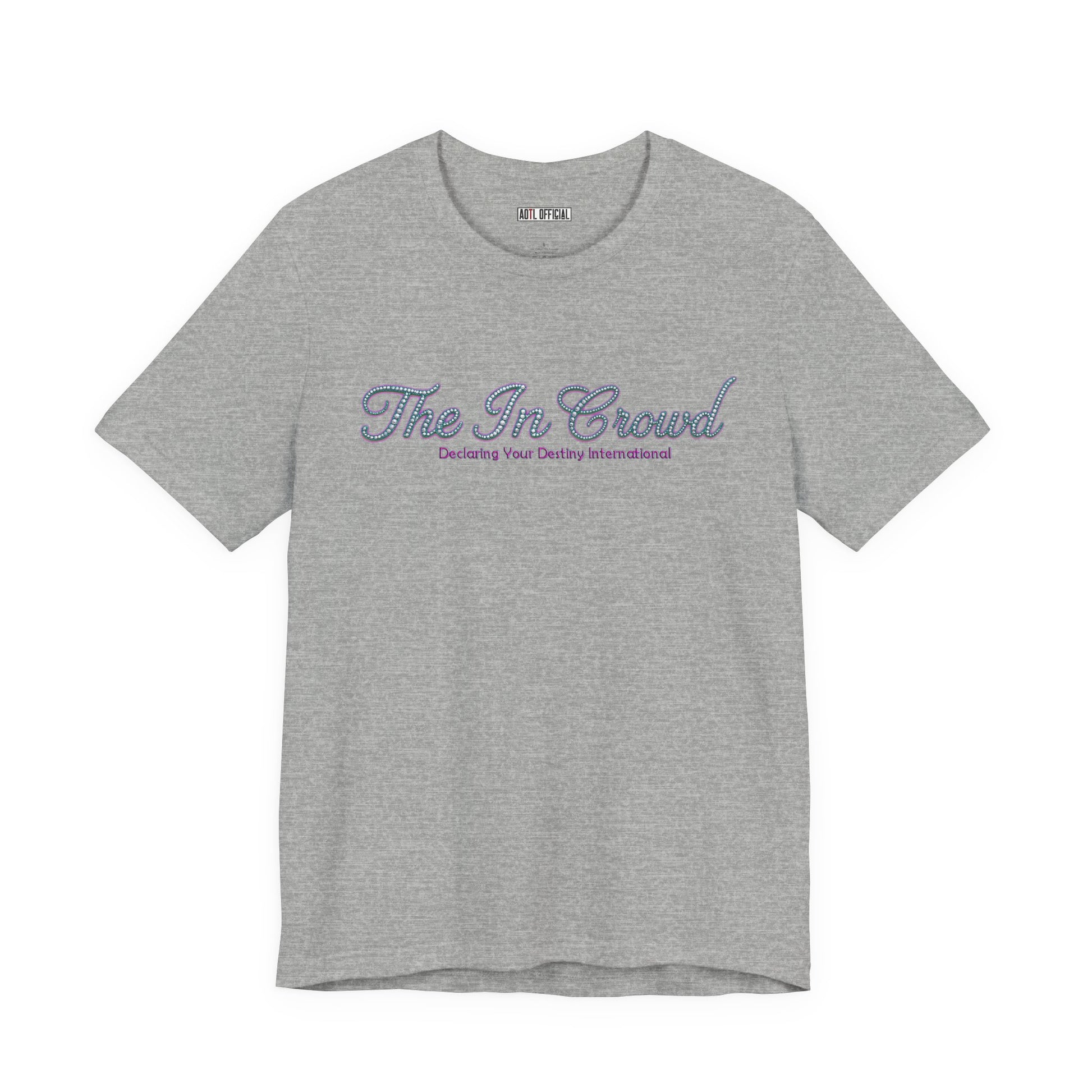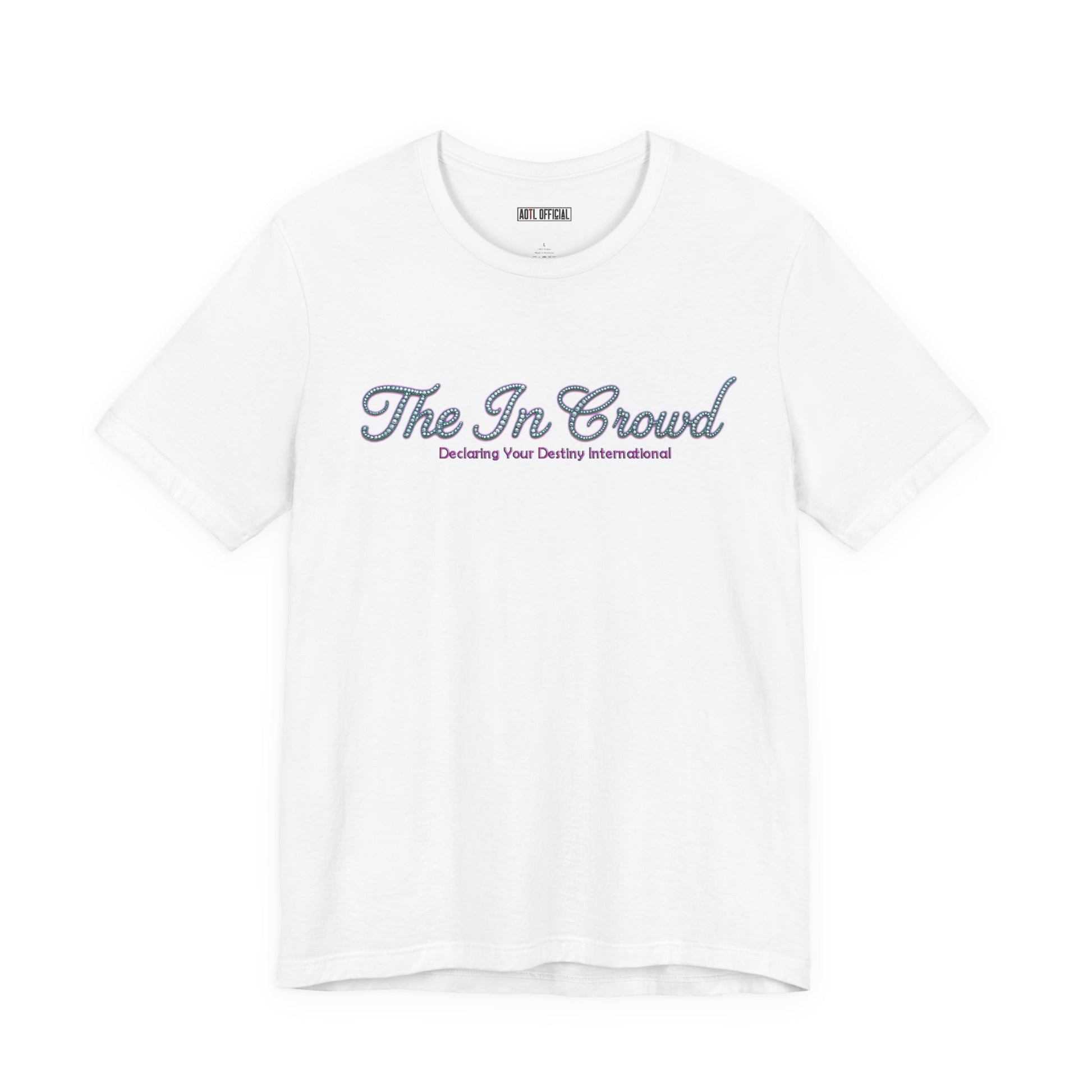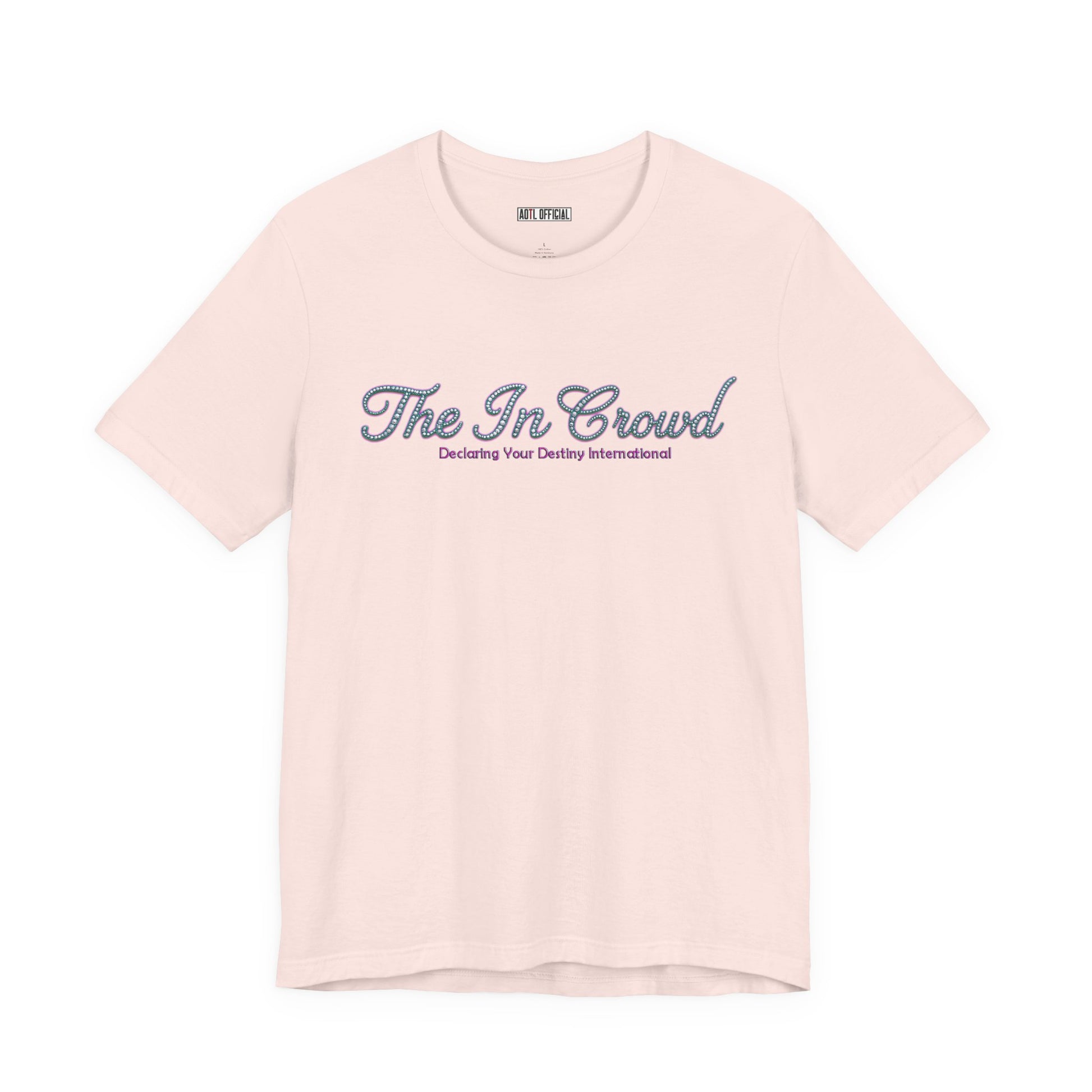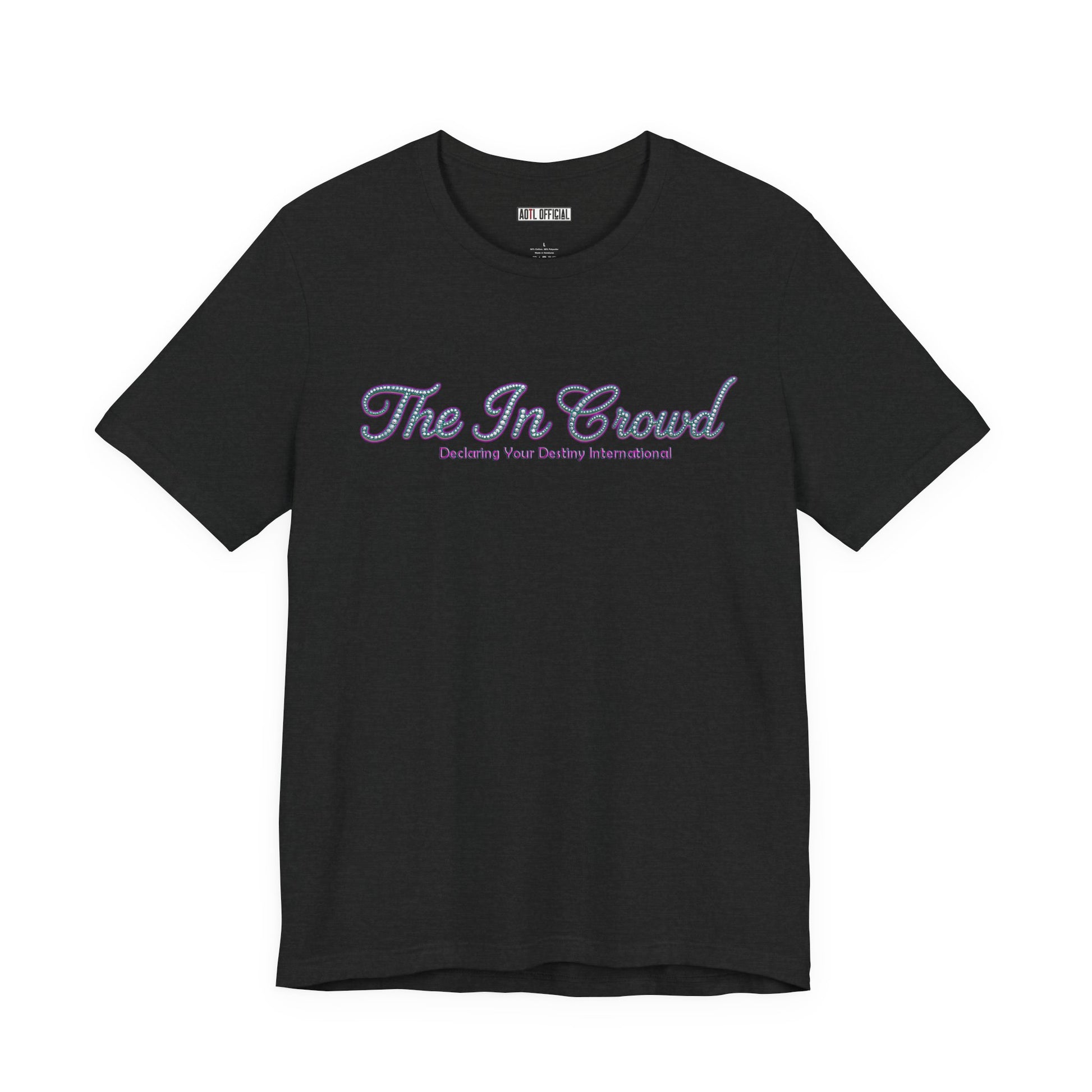 Sparkle boldly into purpose with The In Crowd t-shirt in a rhinestone print(not actual rhinestones)-a symbol for those who choose God's direction over the world's distractions. This design celebrates believers who walk in faith, stand in obedience, and live set apart.