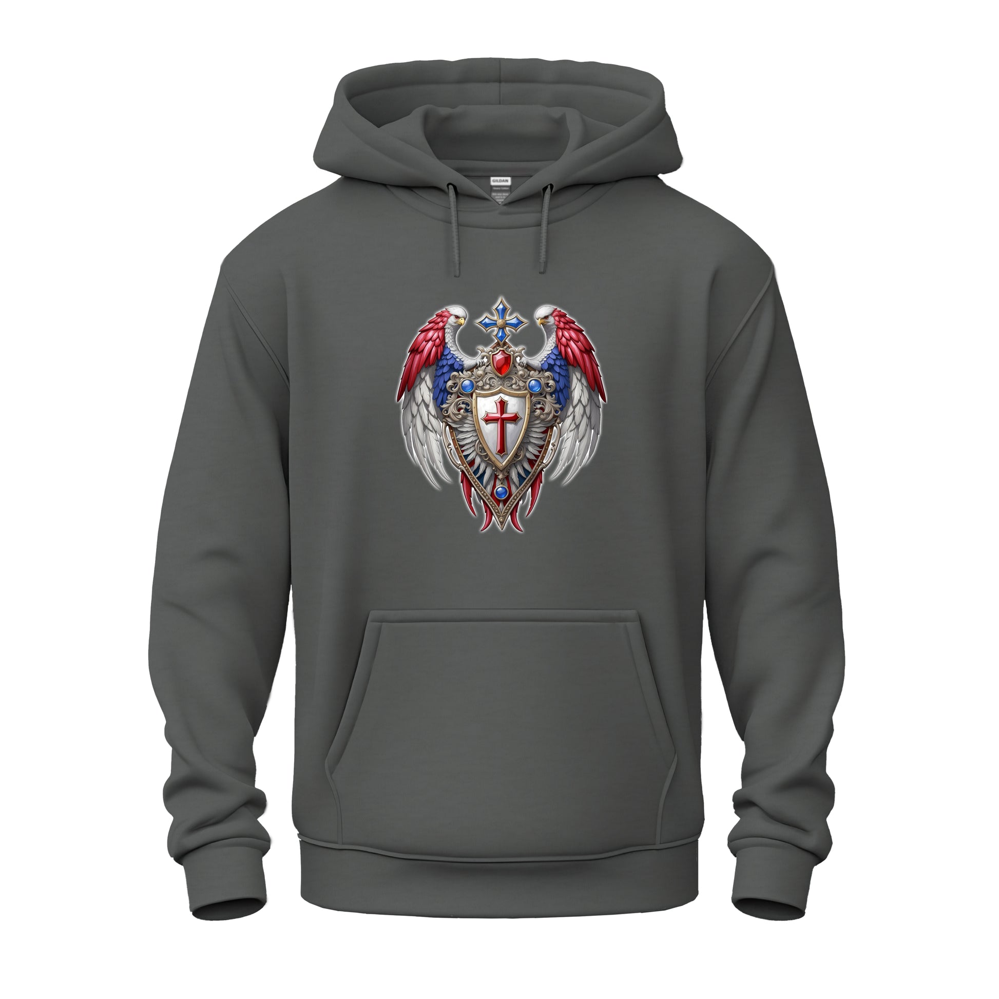 Symbolizing divine protection and national pride, the crest evokes a sense of reverence and strength, reminding us of the intertwined values of faith and freedom.
