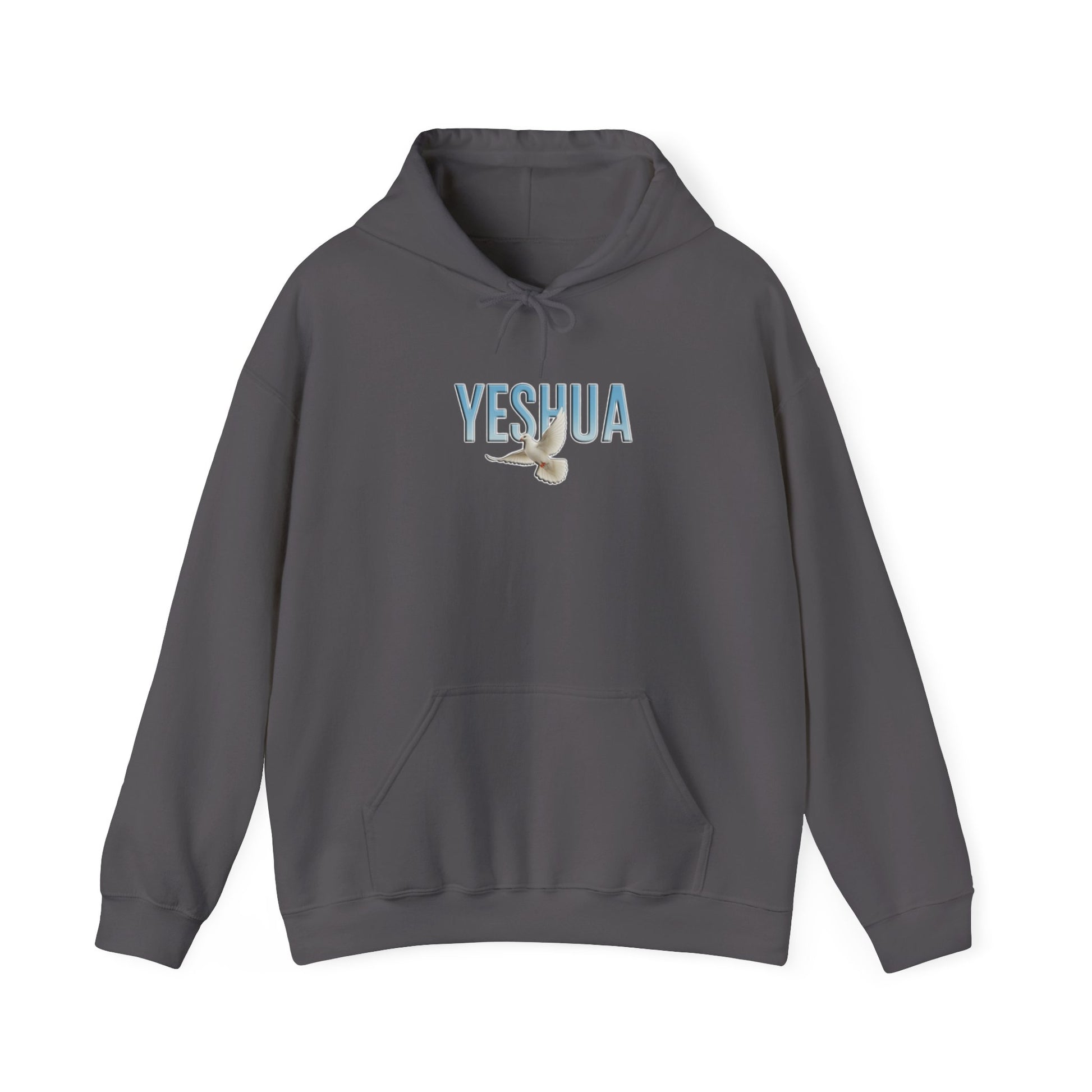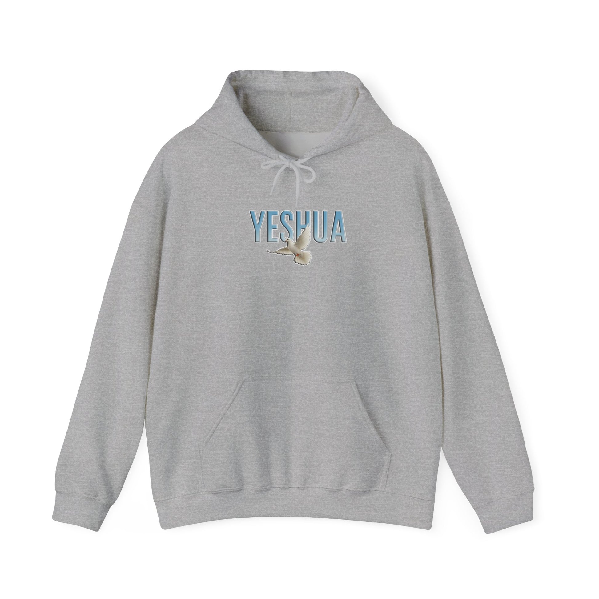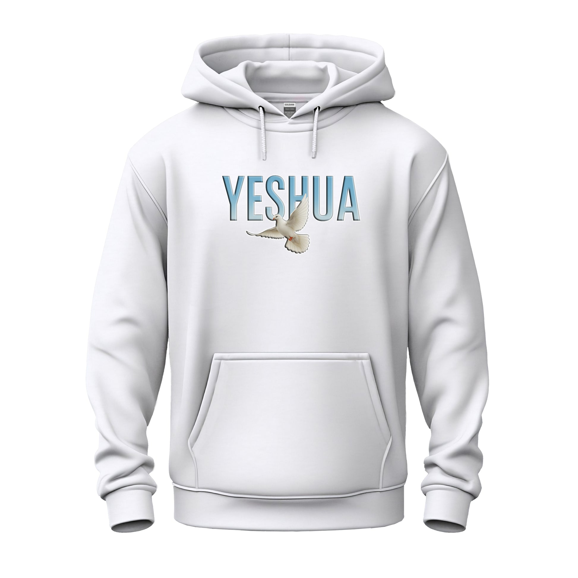 This Christian hoodie blends comfort and strength, designed for those who want to share their faith and honor the Lord . Featuring Jesus' Hebrew name Yeshua, accompanied by a dove, symbolizing the Holy Spirit.