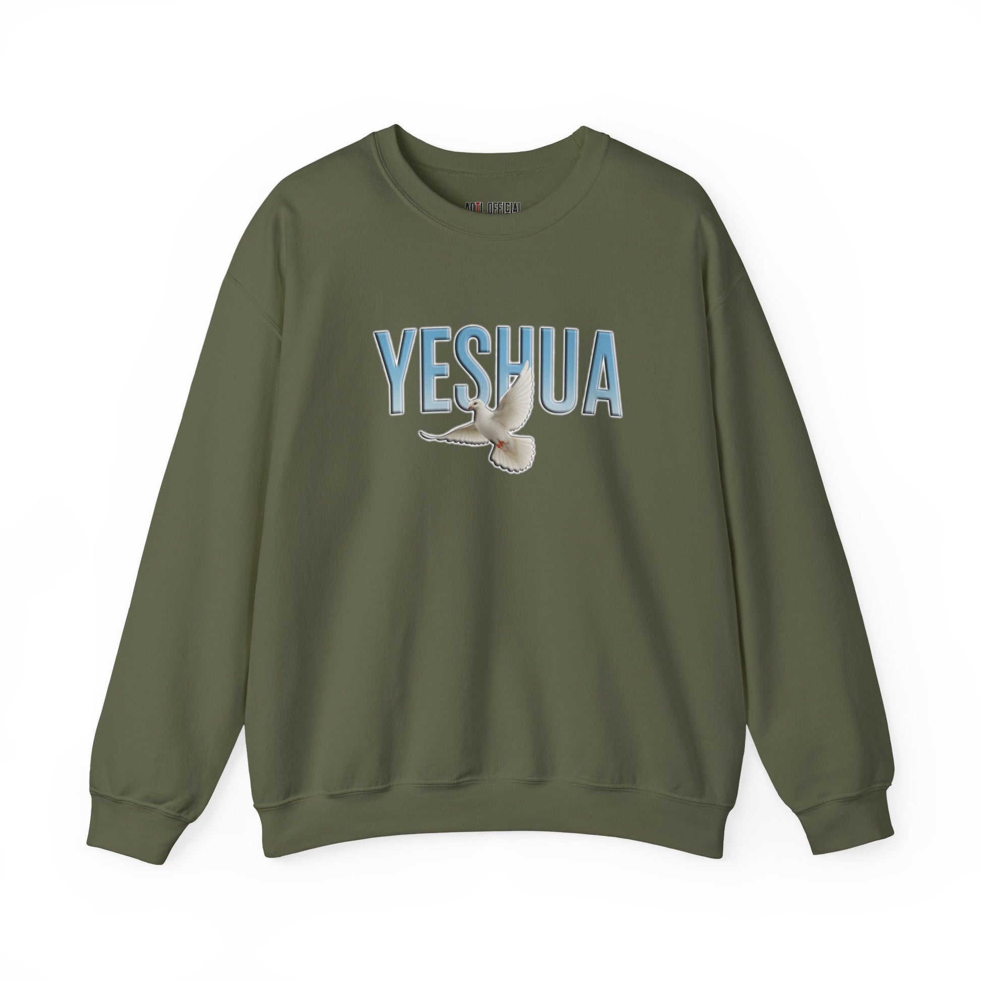 This Christian sweatshirt blends comfort and strength, designed for those who want to share their faith and honor the Lord . Featuring Jesus' Hebrew name Yeshua, accompanied by a dove, symbolizing the Holy Spirit.